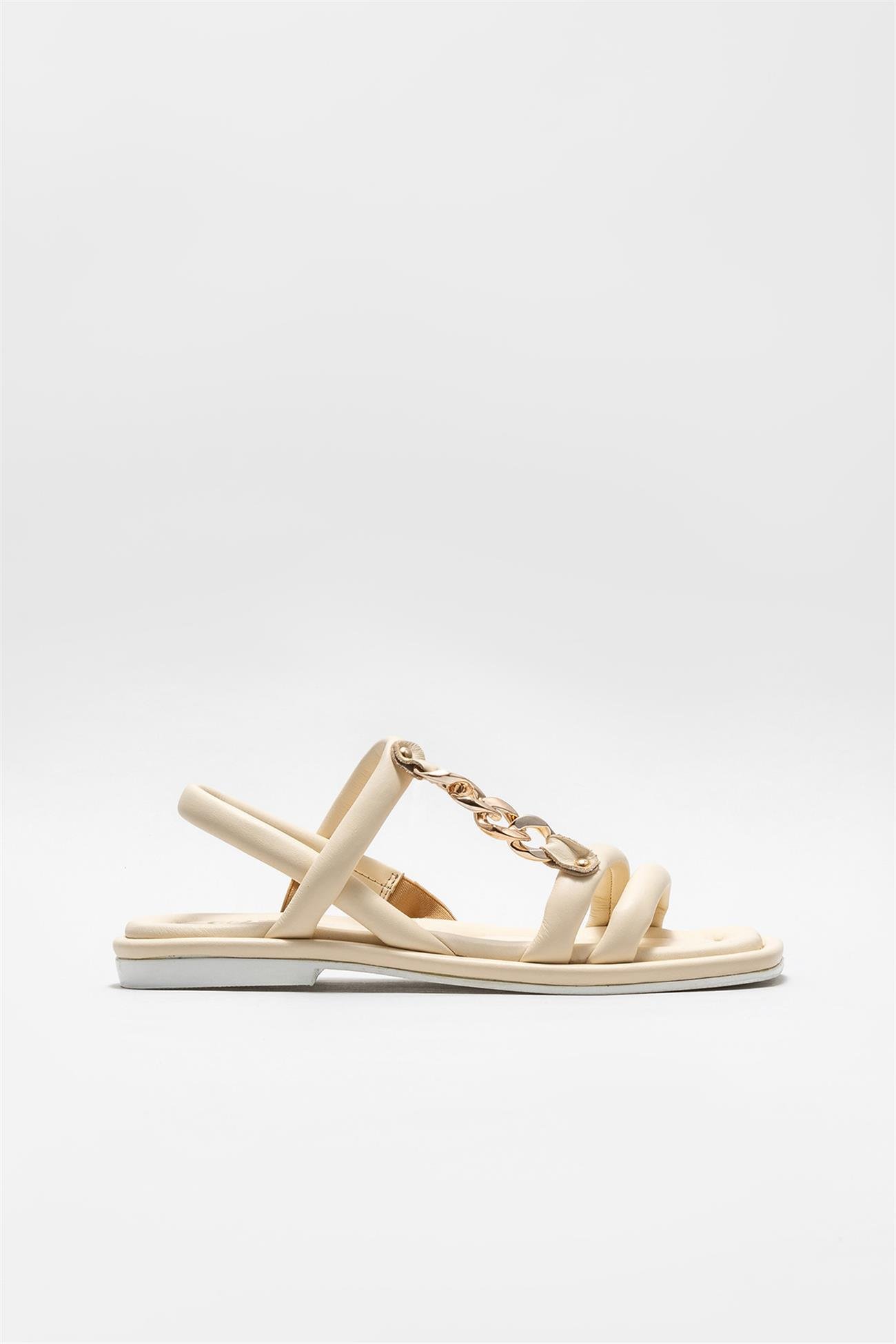 Bej Deri Kadın Düz Sandalet (PERVES-12)