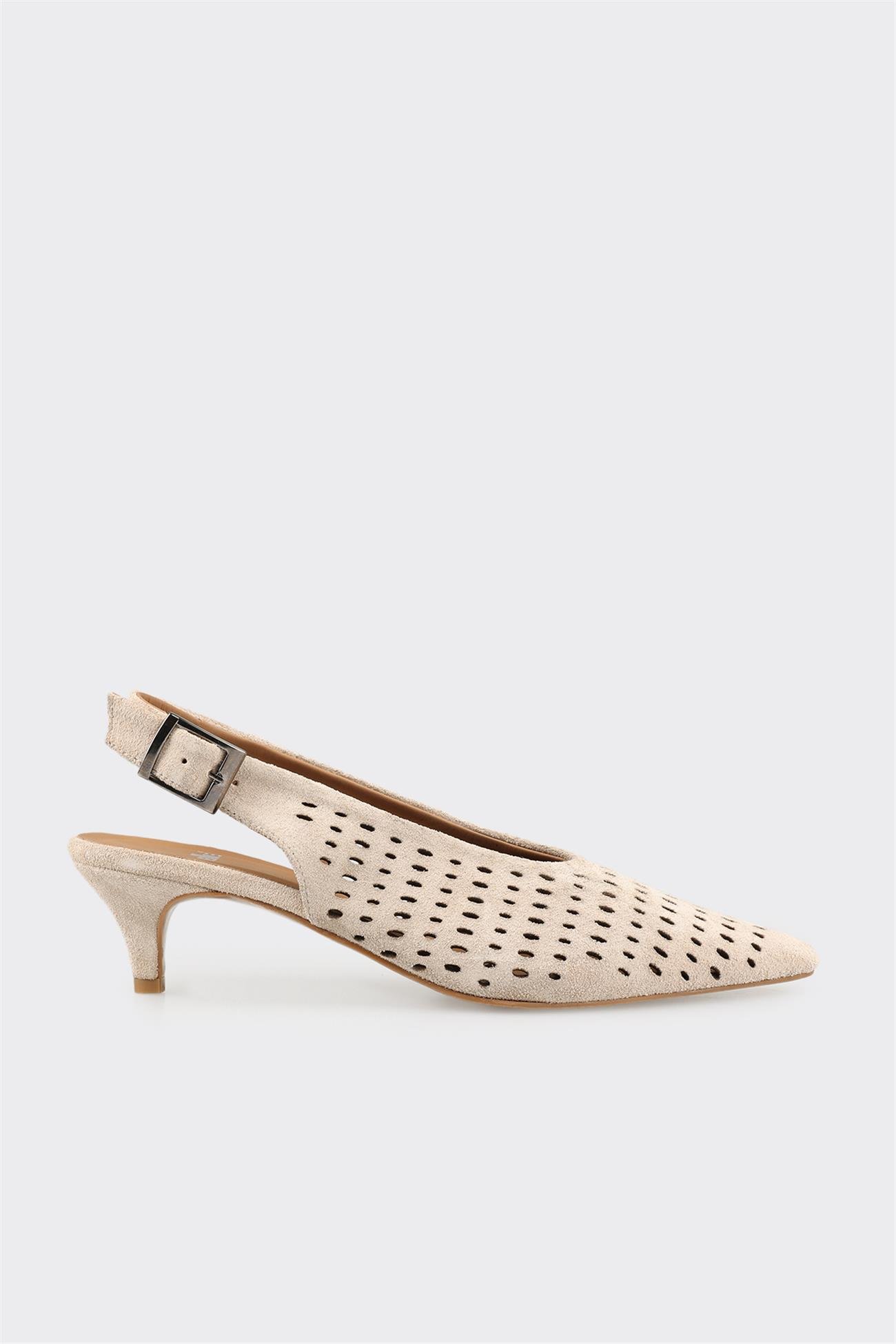 Bej Deri Kadın Topuklu Ayakkabı (PASDANSO-12)