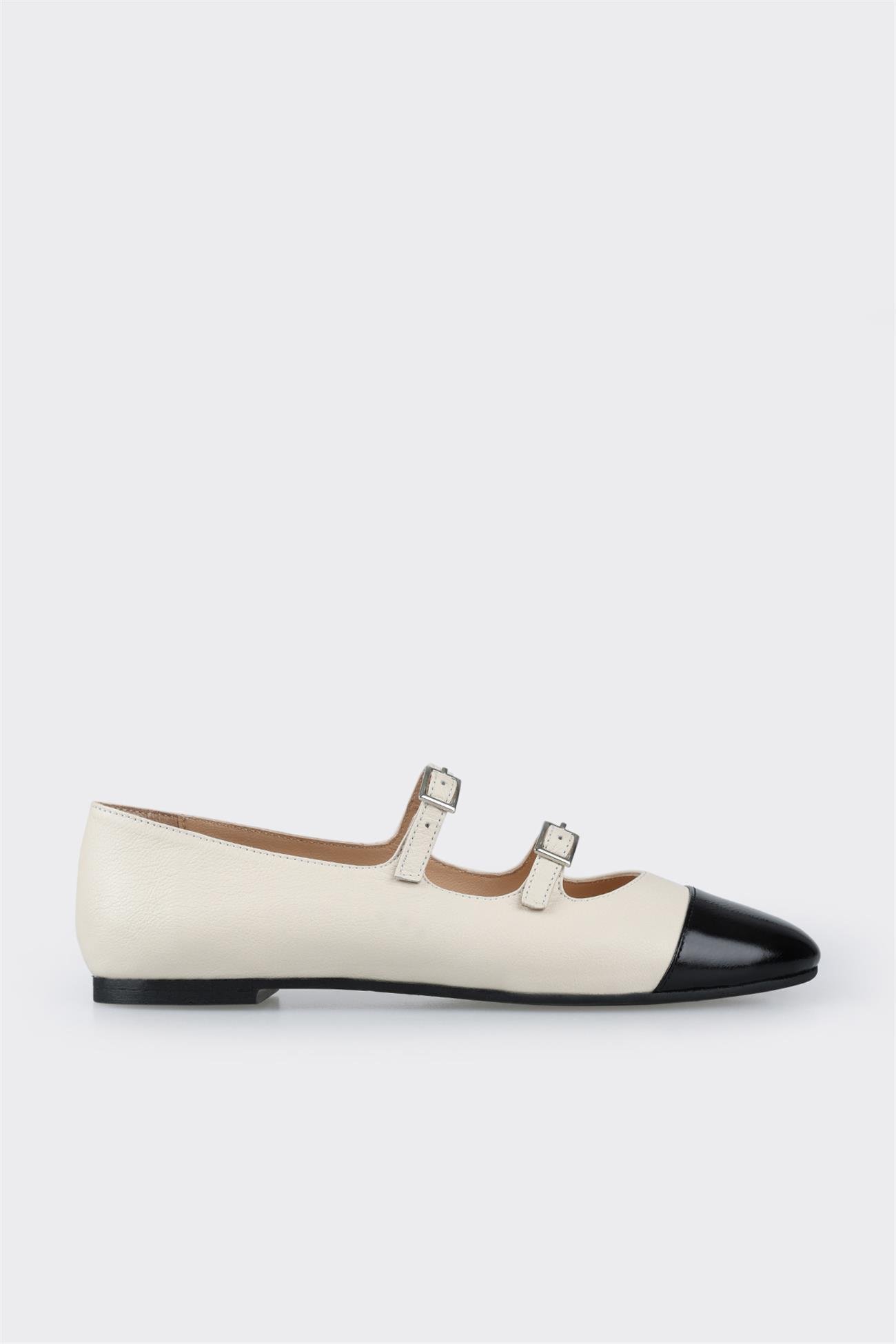 Çift bantlı babet model gün boyunca ofis şıklığınızı tamamlarken ayaklarınızı rahat ettirmek için tasarlandı. Burun kısmındaki parlak deri, gövdenin mat dokusuyla kontrast yaratarak genel kombininizin enerjisini artırır.