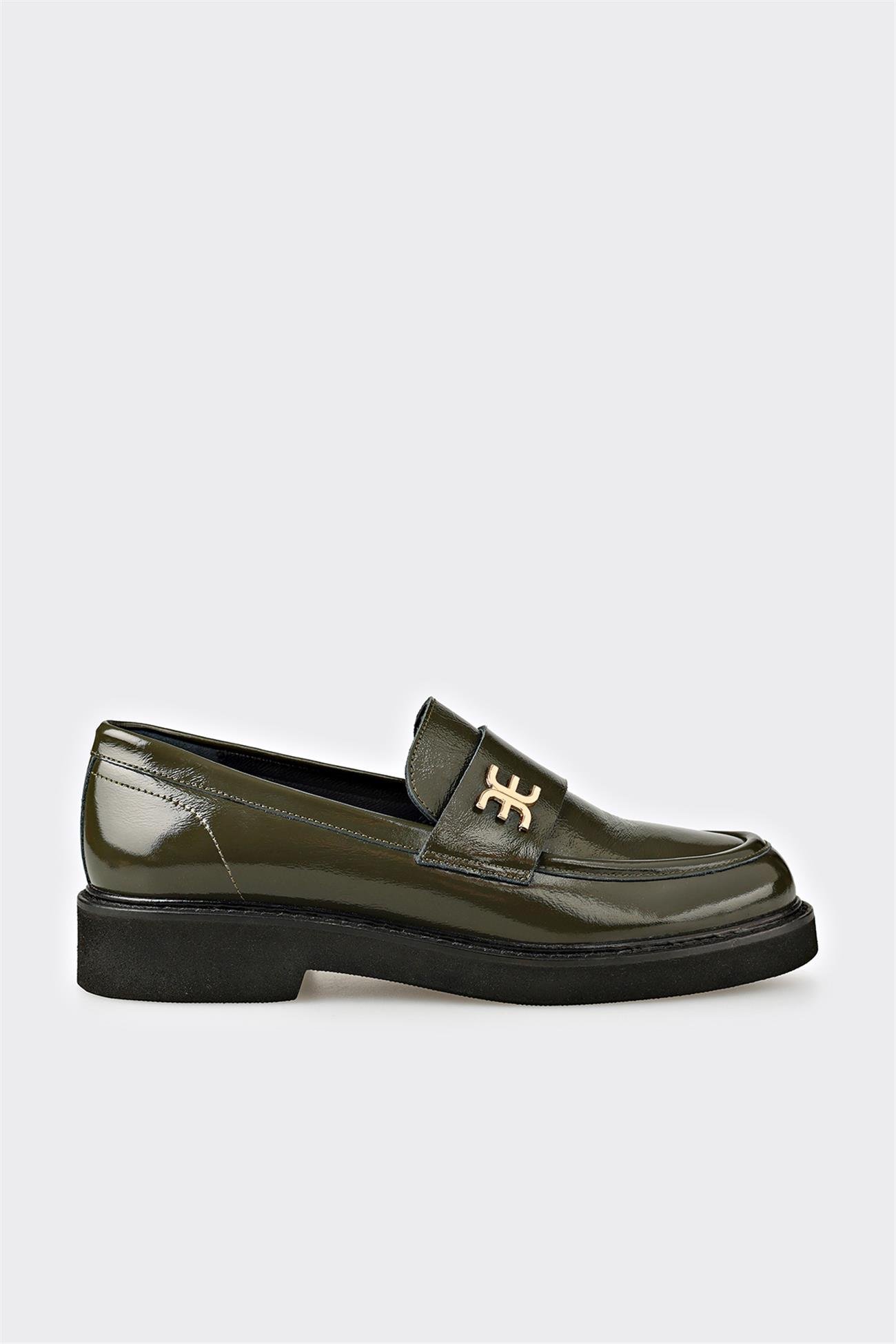 Haki Deri Kadın Günlük Ayakkabı
