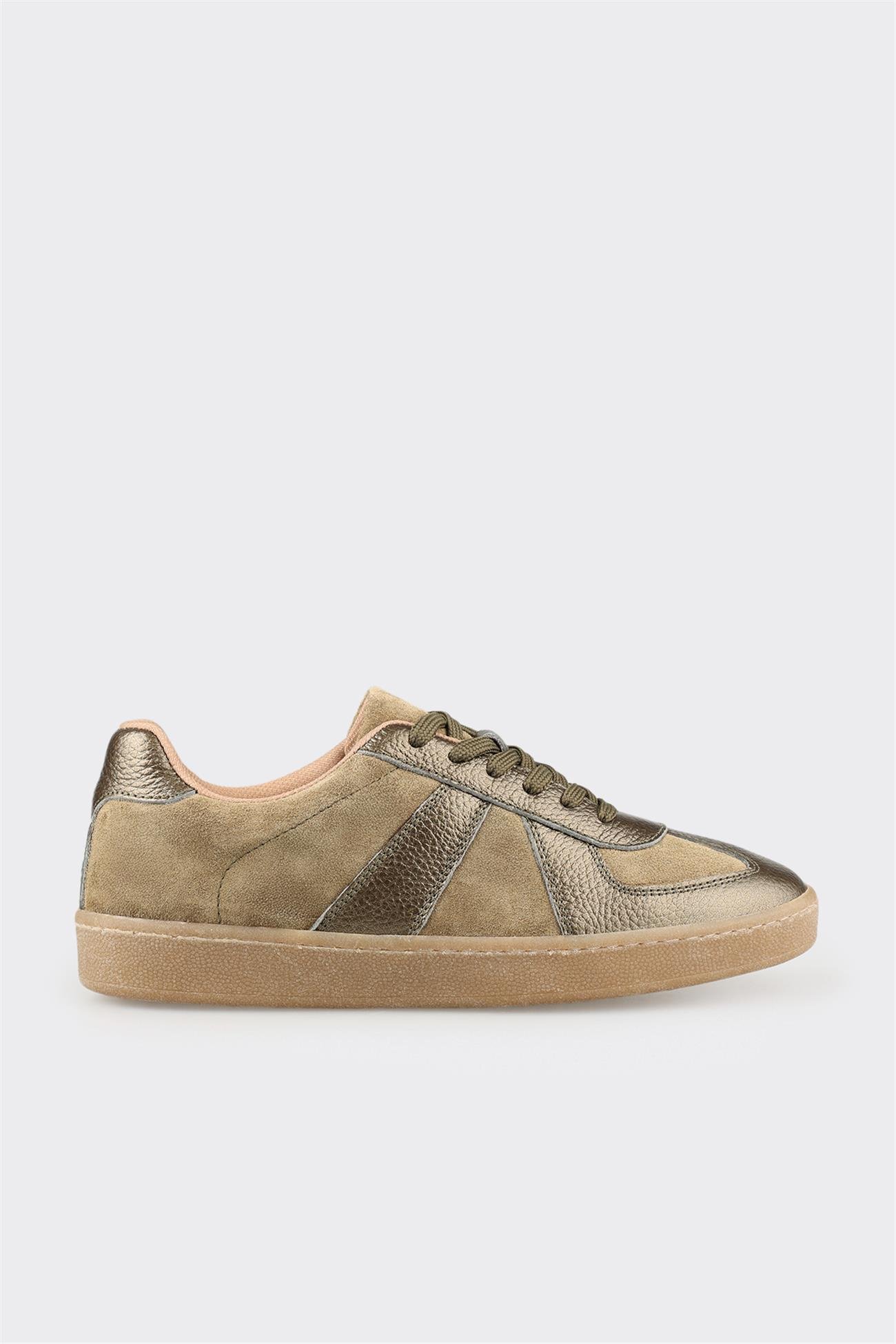 Haki Deri Kadın Spor Ayakkabı