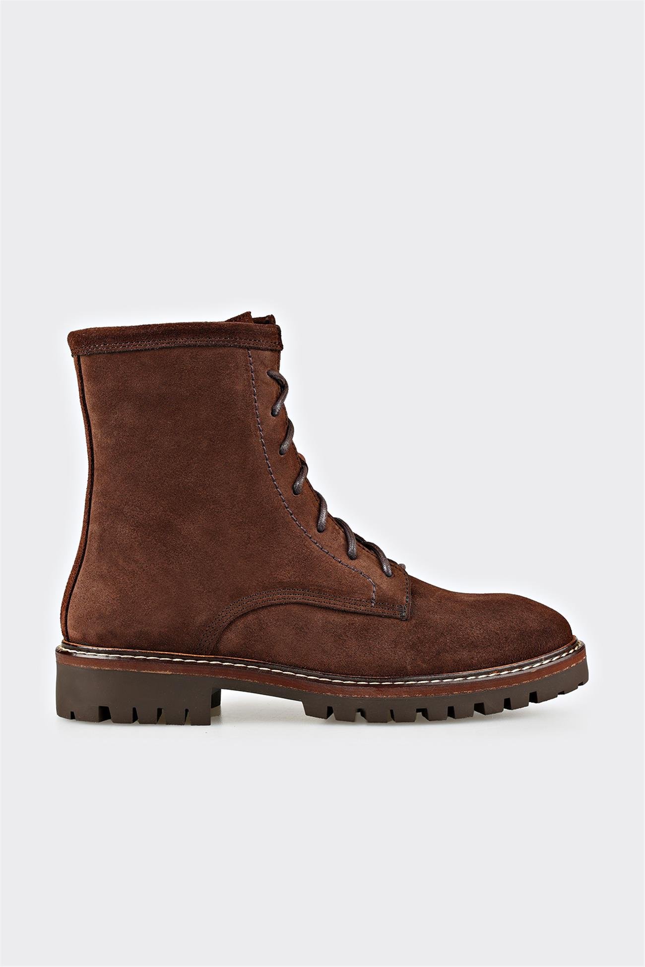 Derin kahverengi tonlarında, yumuşak süet dokusuyla tasarlanmış bağcıklı botlarımızla her adımda şıklığı yakalayın. Kış aylarının soğuk günlerinde sizi sıcak tutacak, şehre dair keşiflerinizde rahatlığınızı sağlayacak bir stil arayışınız varsa, bu botlar tam size göre.