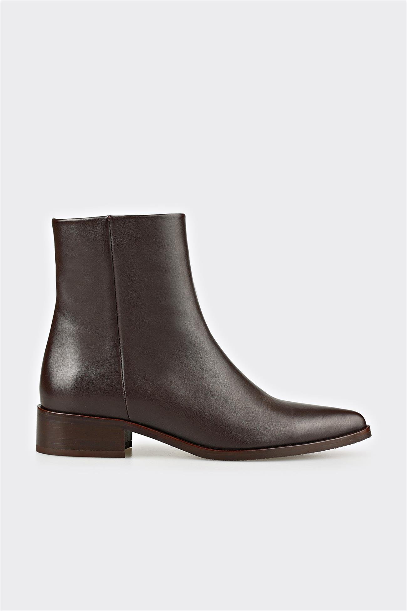 Kahve Deri Kadın Klasik Bot (PINEL-18)