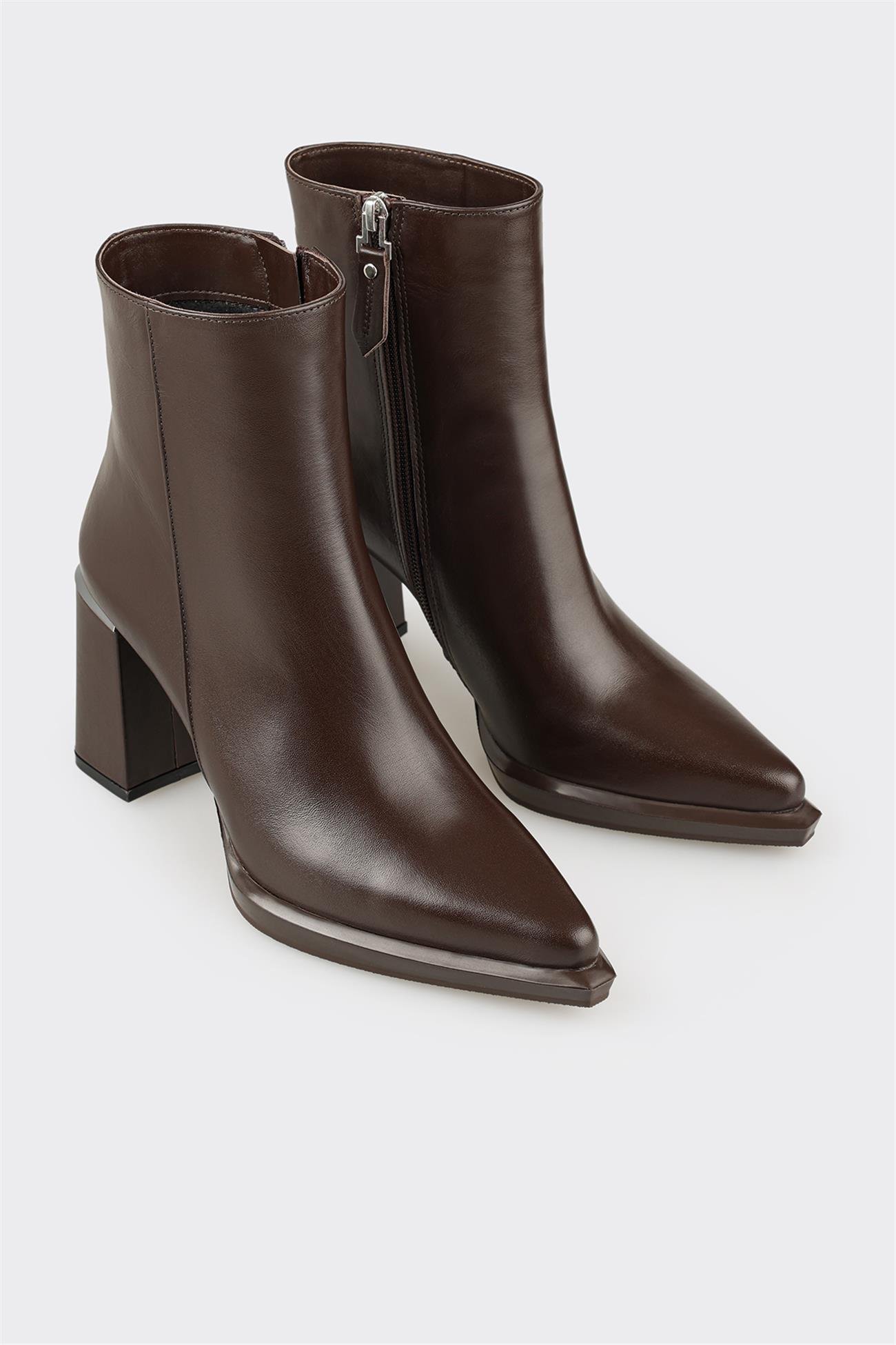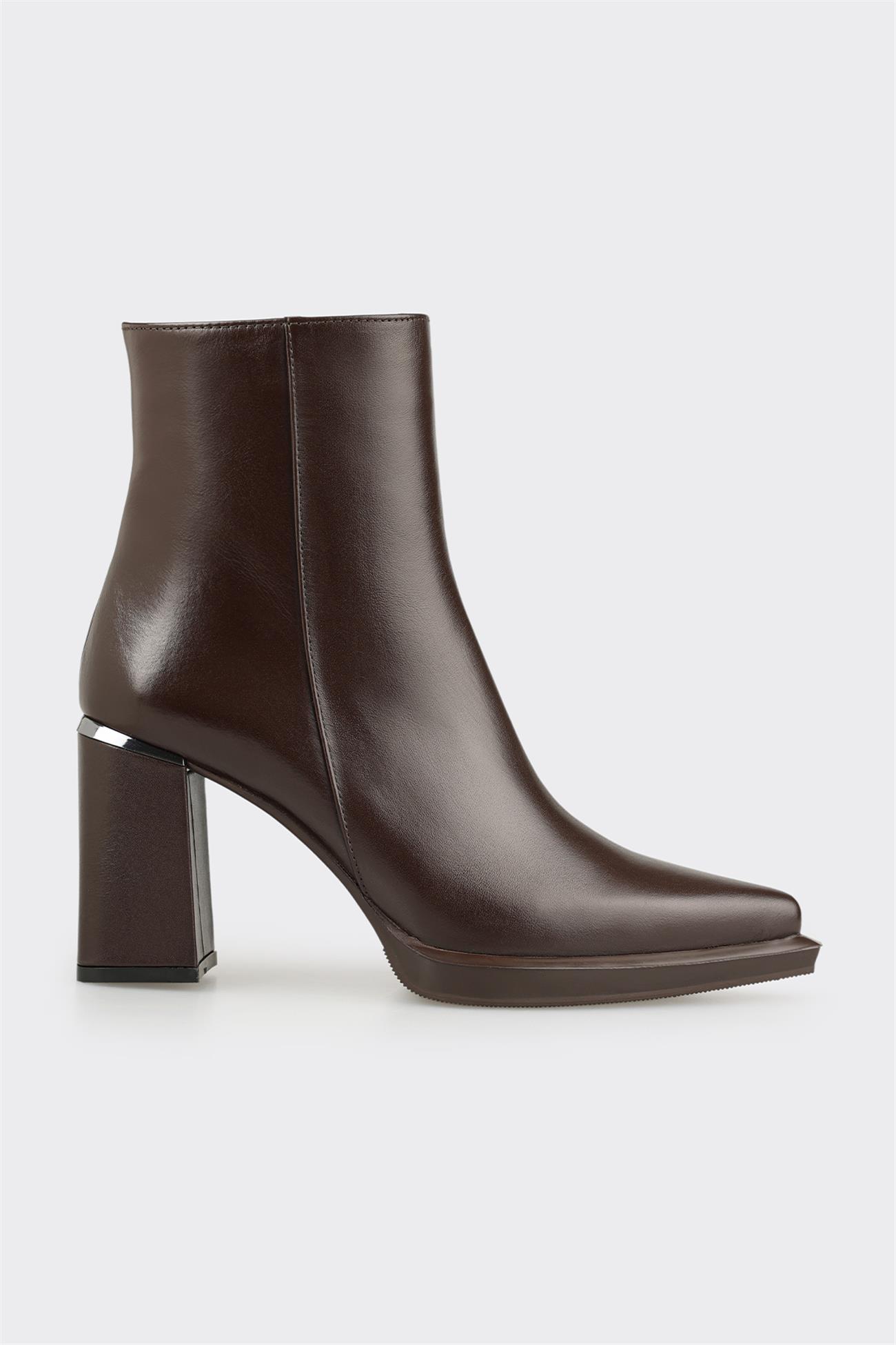 Kahve Deri Kadın Topuklu Bot (KIUPSE-2-18)