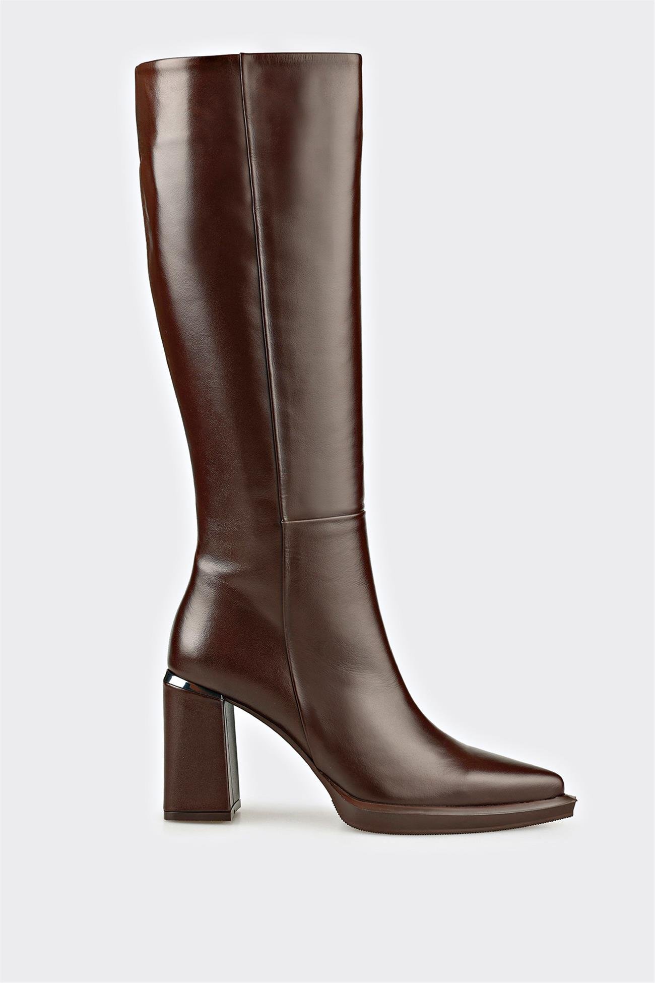 Kahve Deri Kadın Topuklu Çizme (ENODA-2-18)