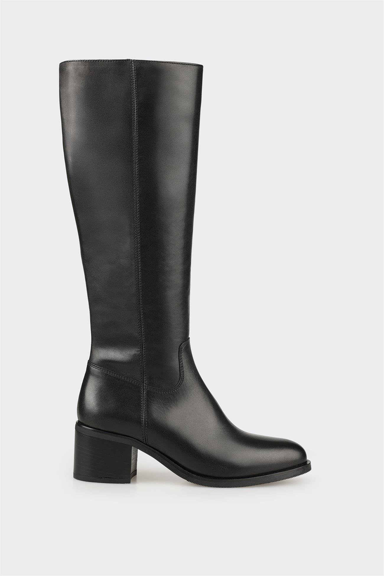 Siyah Deri Kadın Çizme