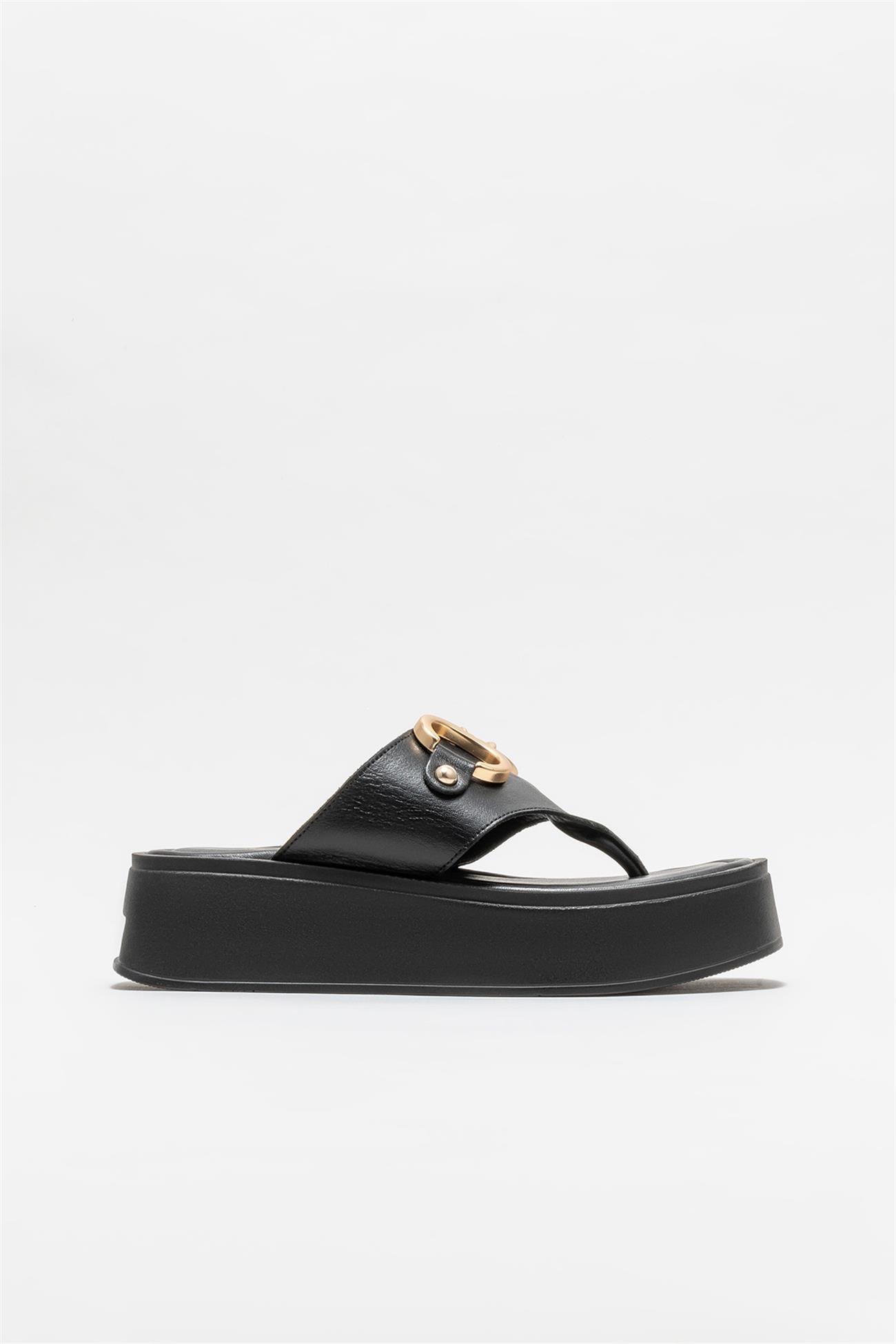 Siyah Deri Kadın Dolgu Topuk Terlik (ILONAS-01)