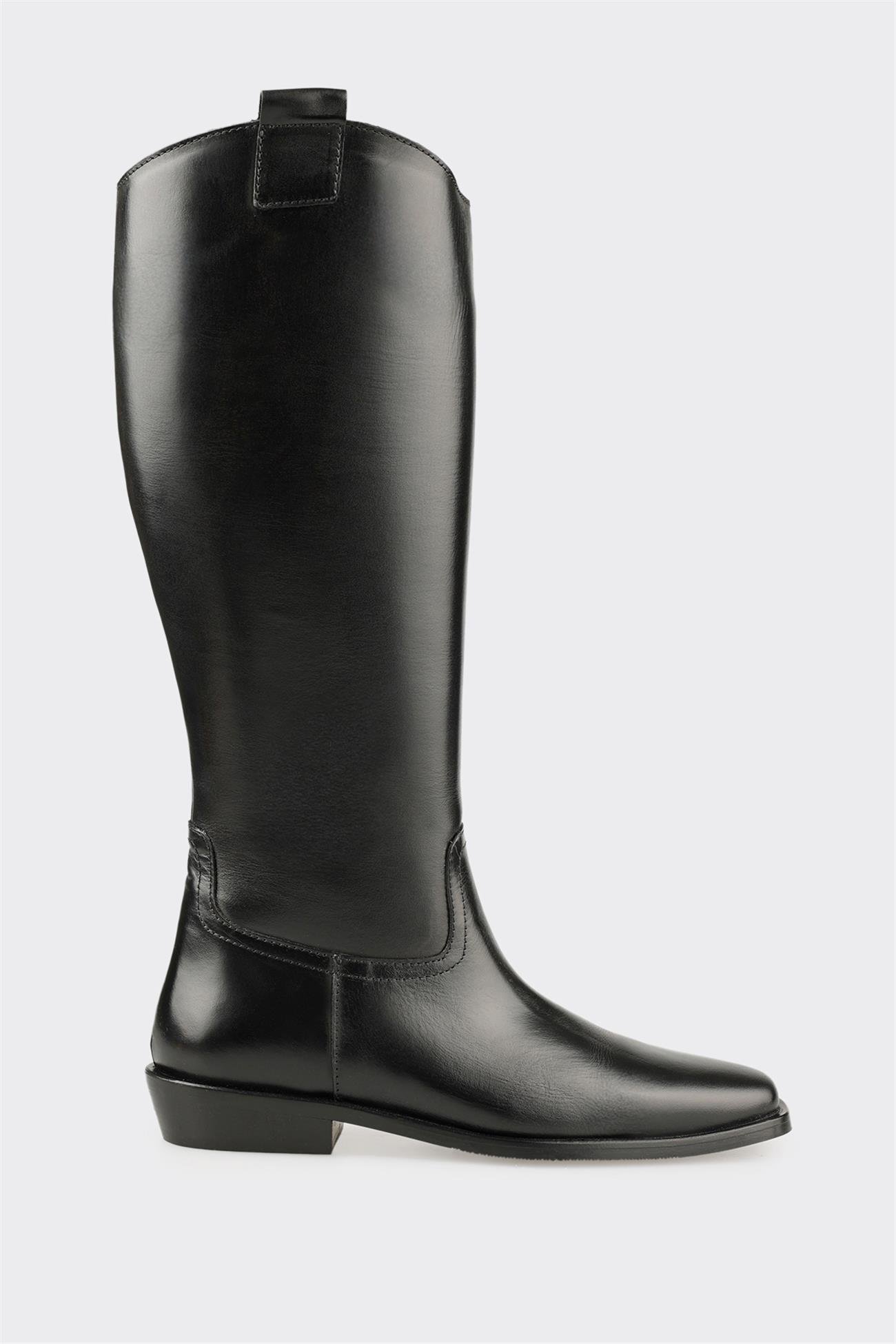 Siyah Deri Kadın Düz Çizme (JUCEY-01)