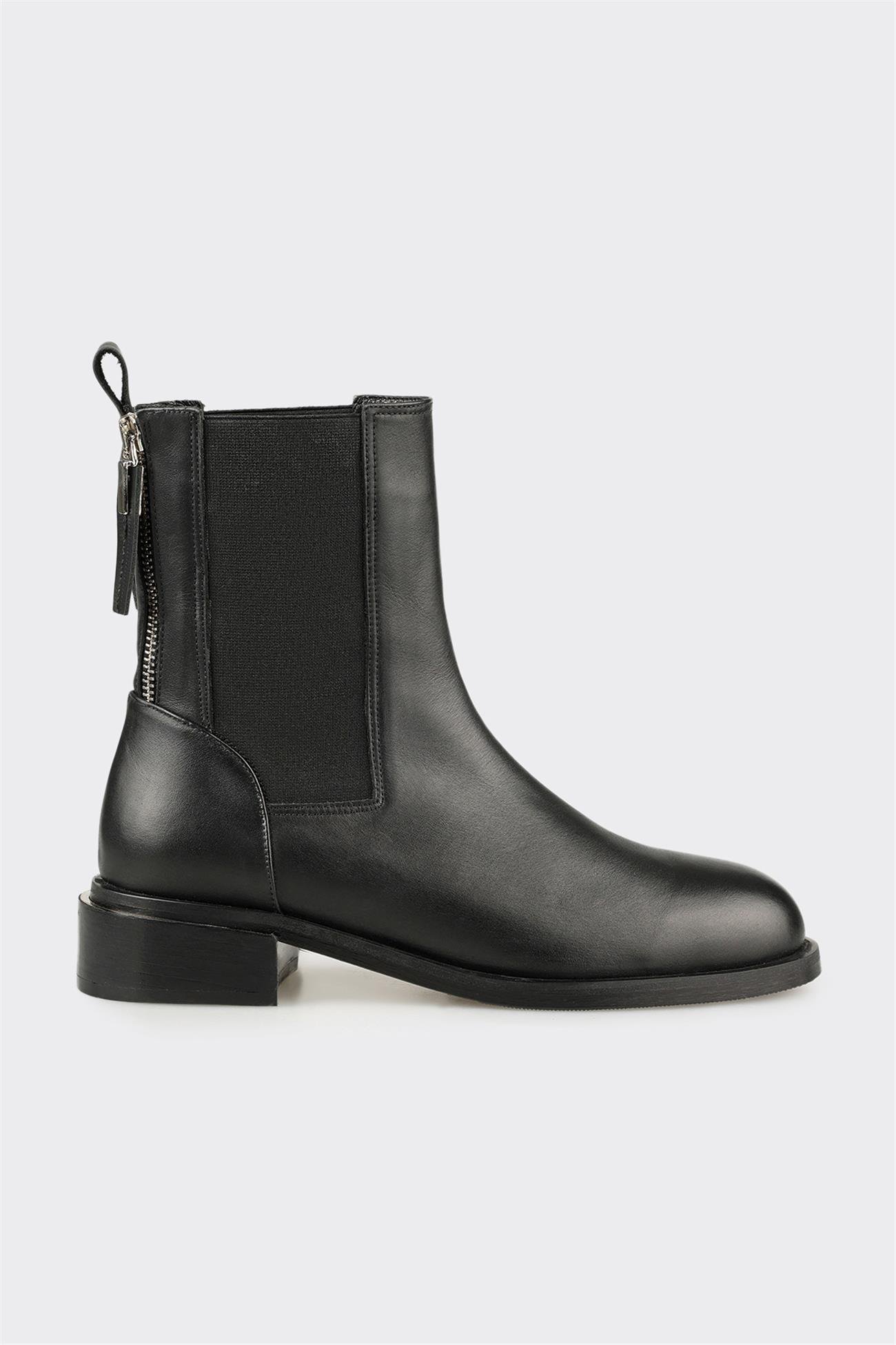 Siyah Deri Kadın Klasik Bot (ALARATA-01)