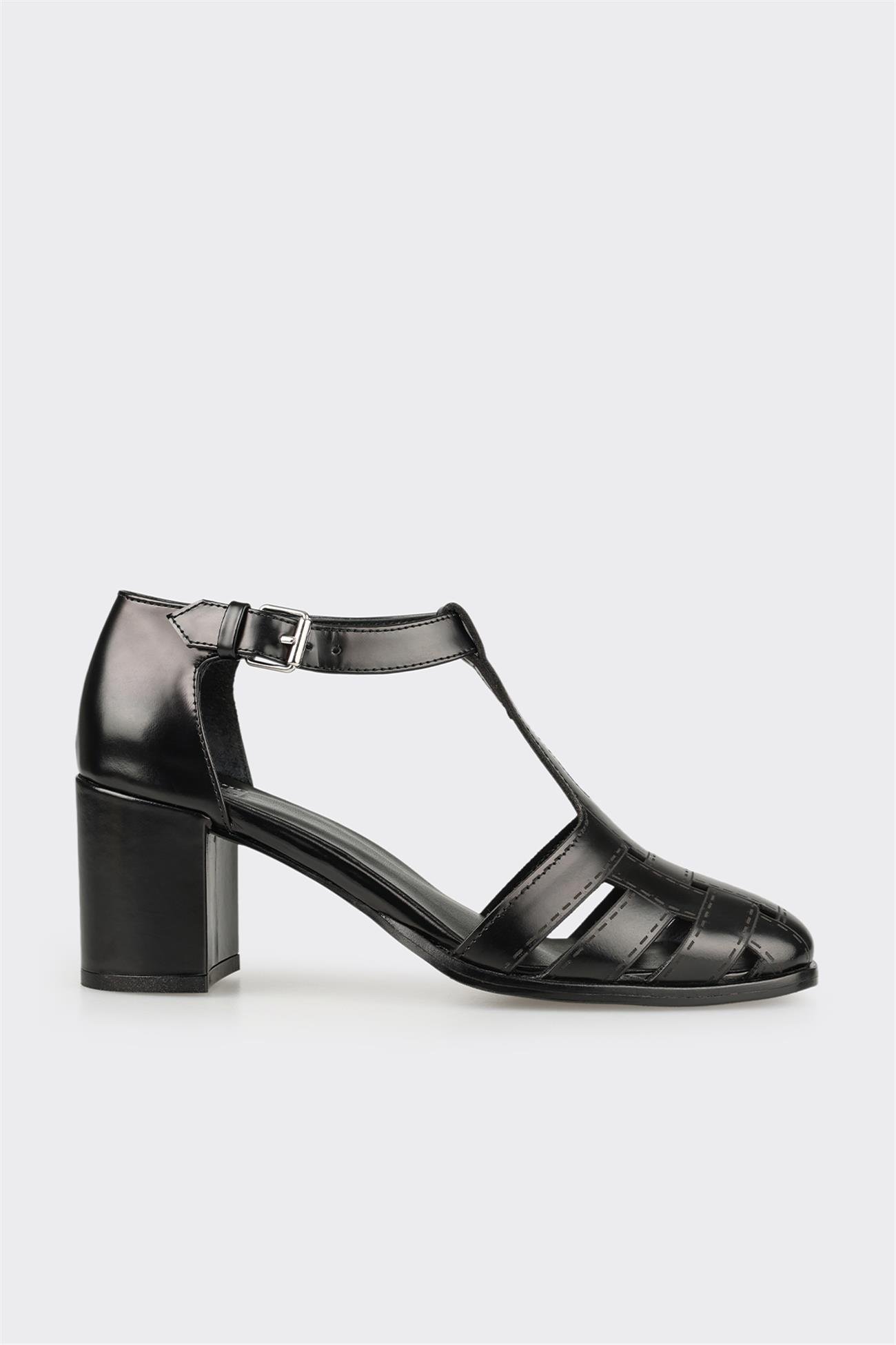 Siyah Deri Kadın Topuklu Ayakkabı