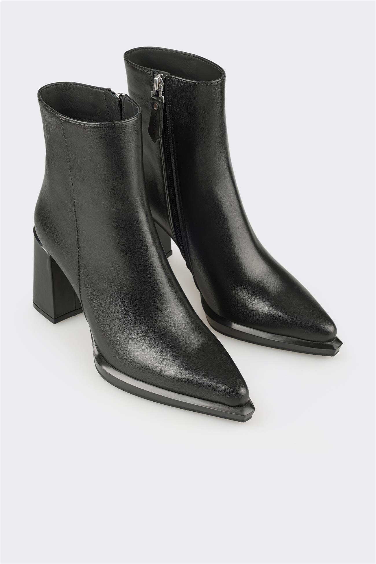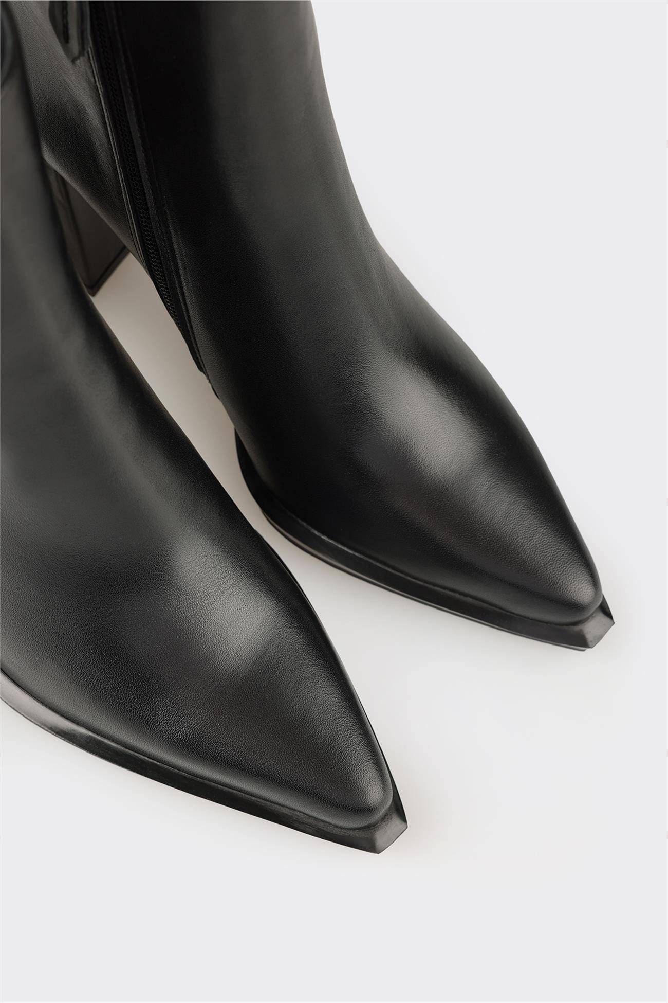 Siyah Deri Kadın Topuklu Bot (KIUPSE-2-01)