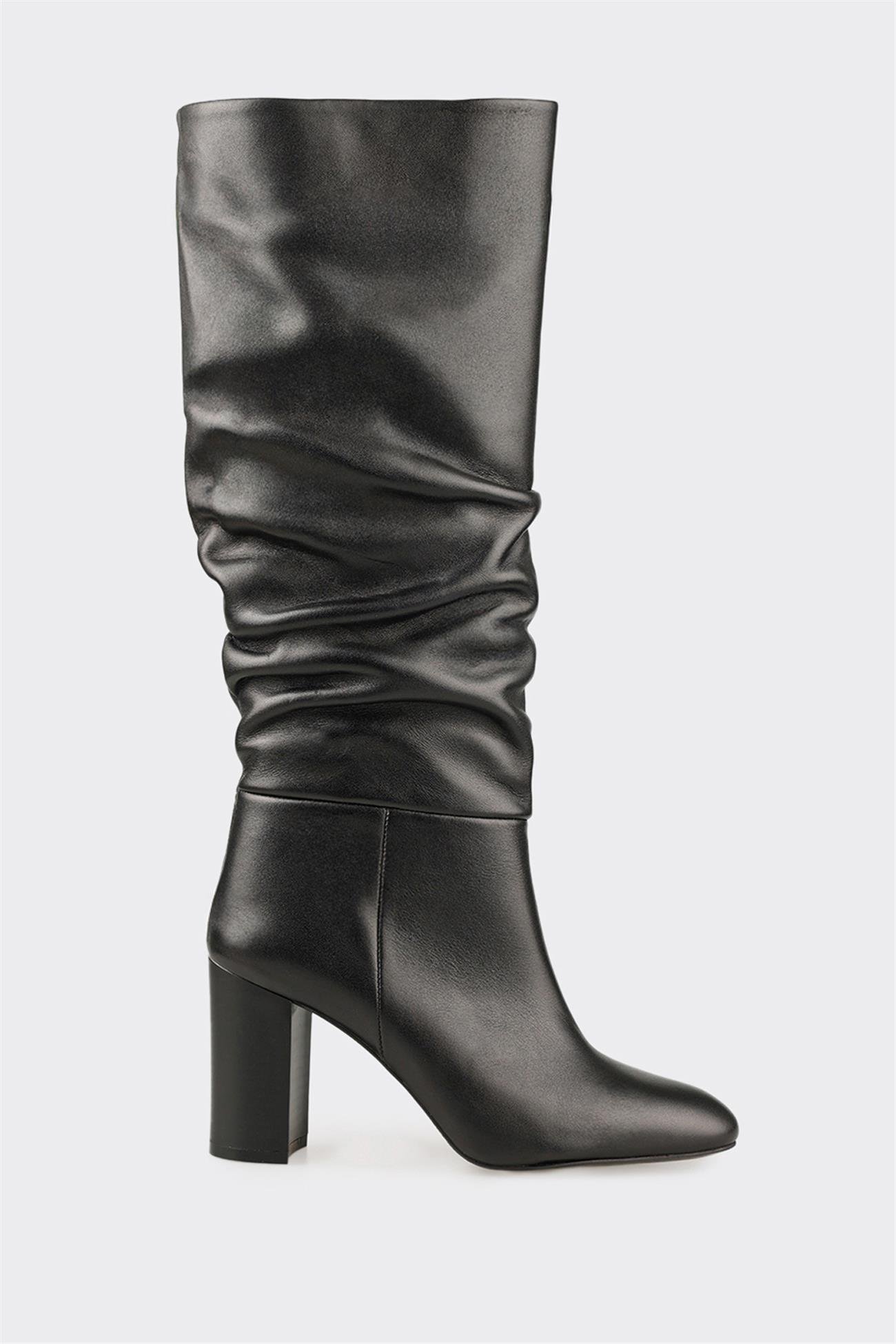 Siyah Deri Kadın Topuklu Çizme (BRENKA-2-01)