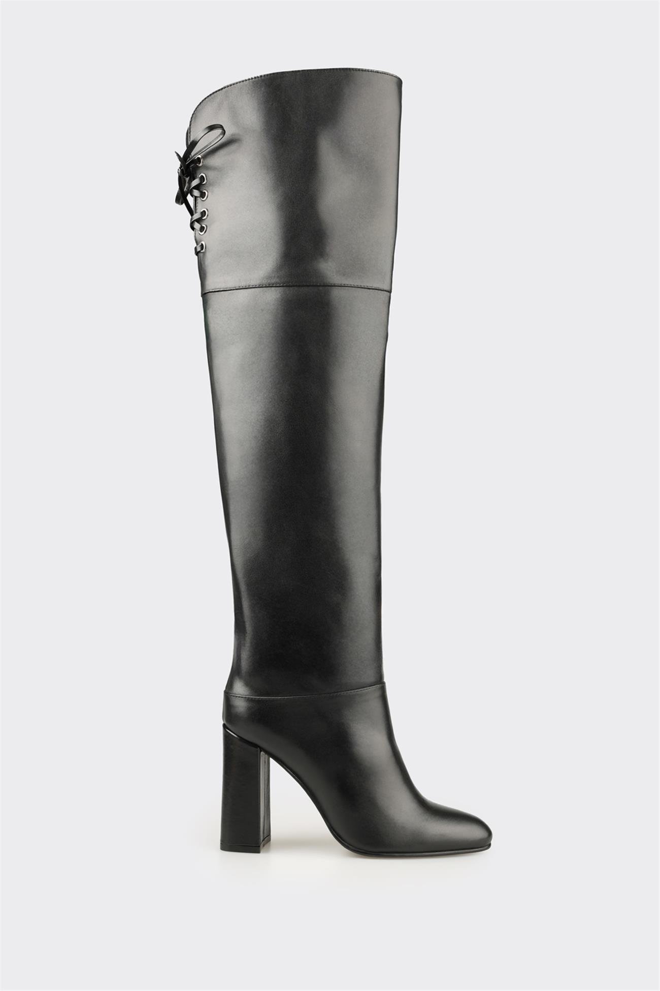 Siyah Deri Kadın Yüksek Topuk Çizme
