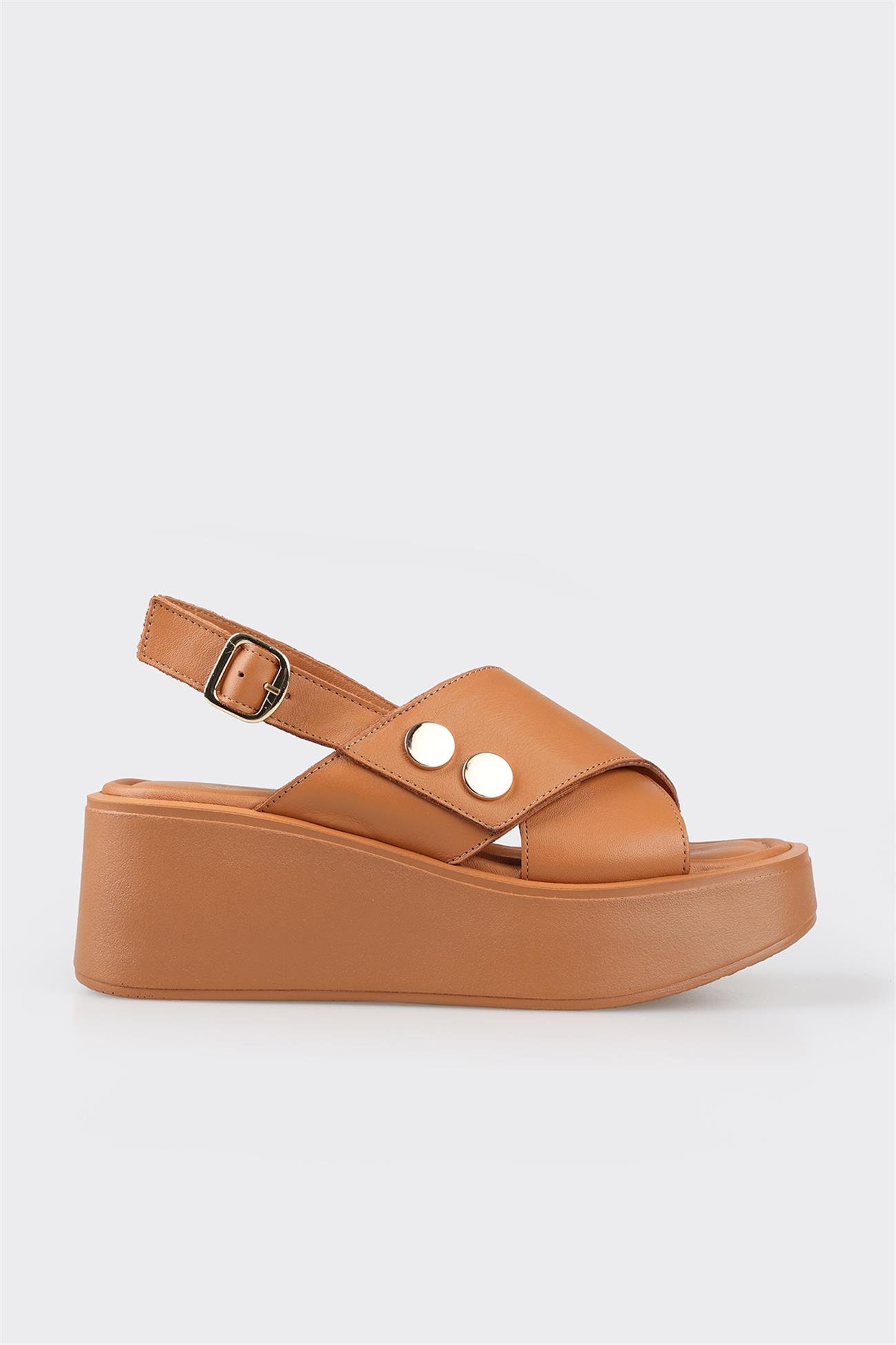 Taba Deri Kadın Dolgu Topuklu Sandalet (FARIHA-1-05)